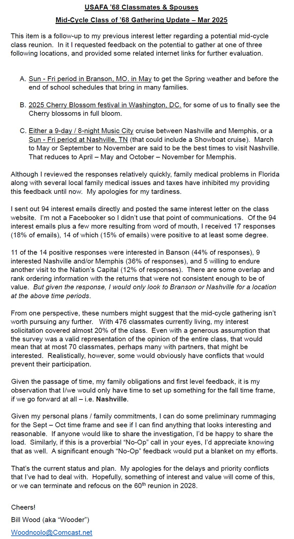 high costs of travel for many to the Colorado Reunions; 2) Reasonably