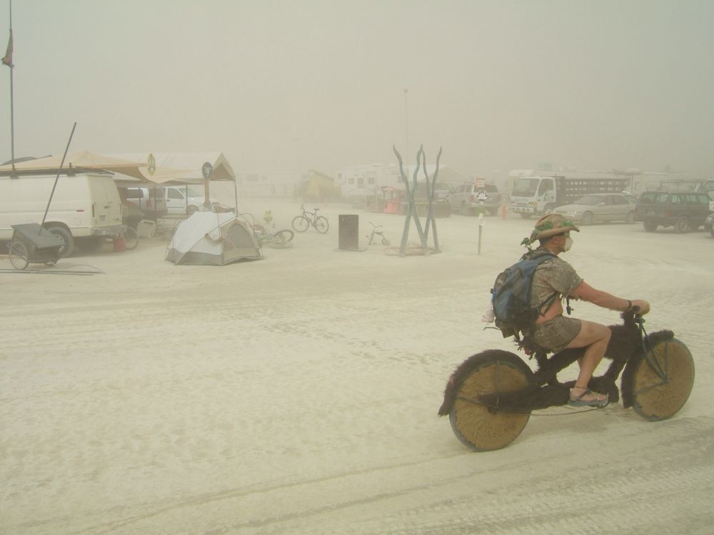 Sandstorm starting at encampment in Burning Man. Less than two minutes later, it was a total white-out.