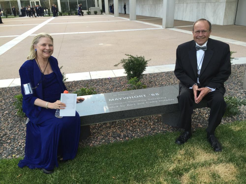 Diana and I at "our" bench during the dedication Polaris Hall (graciously provided by Bart Holiday, '65).