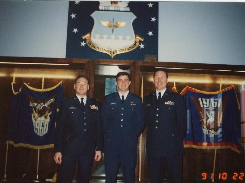 A 1991 shot of the USAFA Torreanos: Me, C3C Mark Jr ('94) and Col Mike ('70).