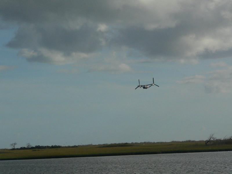 The Marines fly the MV-22 from New River MCAS, quite near us. I captured a photo of one - the props really were turning, but I had a sports profile (high shutter speed) set in the camera.